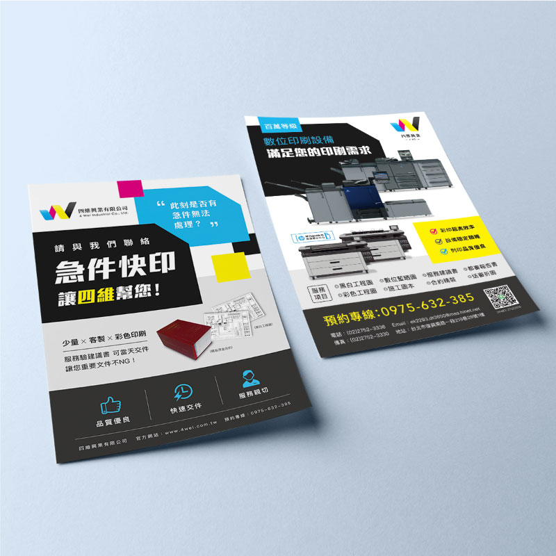 DM傳單使用在活動宣傳、新產品銷售、結合促銷活動,簡單的紙本資訊,可提供民眾索取或發放。三鼎提供平價的合版印刷,以及多項紙材的選擇,給您便捷快速的印刷服務。 材質資訊: 銅版紙100/150P:印刷業最普遍使用,特色光澤平滑、色澤突出,油墨印刷穩定。 銅西卡200/250P:硬度較高,適合需要厚一點的印刷物,紙面平滑潔白,印刷後色彩飽和。 道林紙100P:易於書寫,吸墨性良好,紙面無光澤,視覺不反光刺眼。