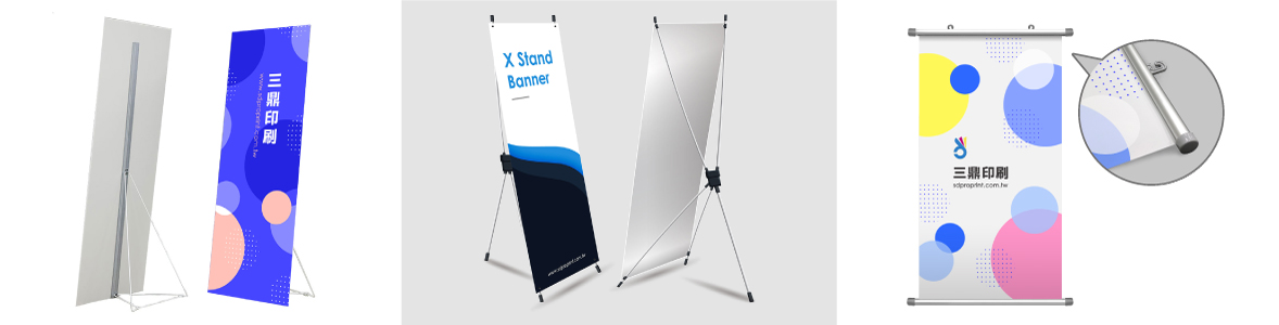 展架(鐵架立牌/X展架/掛軸): 我們有不同型式搭配您的使用目的,展示銷售項目、熱銷商品或是活動說明都十分方便。